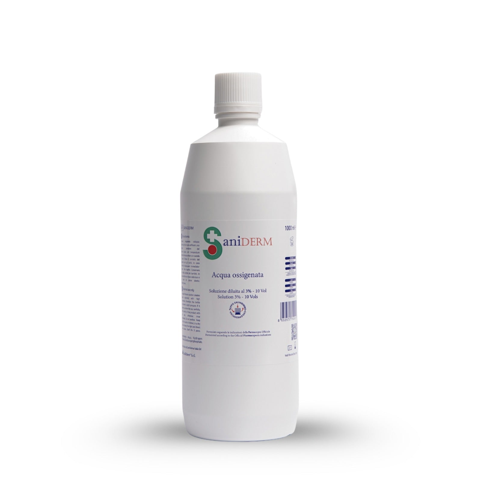 SaniDerm - Acqua ossigenata (perossido di idrogeno) F.U. 3% 10 volumi con tappo di sicurezza